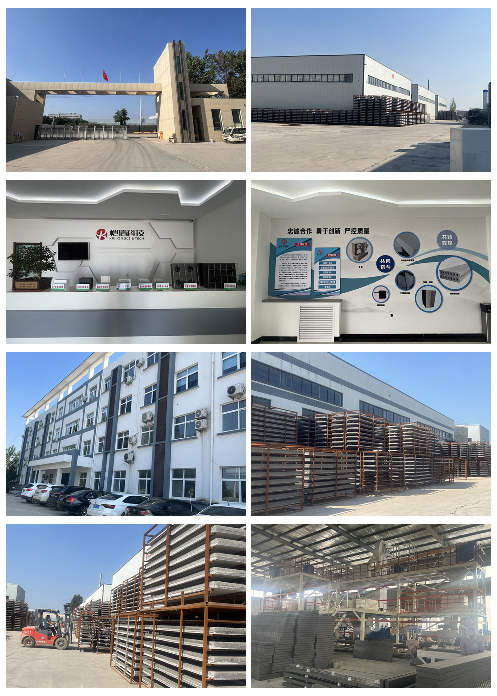 河北恺信节能科技有限公司坐落在京、津、廊三角地区的大城县权村镇工业区,是一家集生产、研发、销售、施工于一体的新型建材产品公司,拥有完整、科学的质量管理体系。公司注册资金5100万元,占地110亩,车间21000平米,办公楼面积3600平米,科研人员6人,工作人员98人,一体化生产线三条,日生产量8000平米。