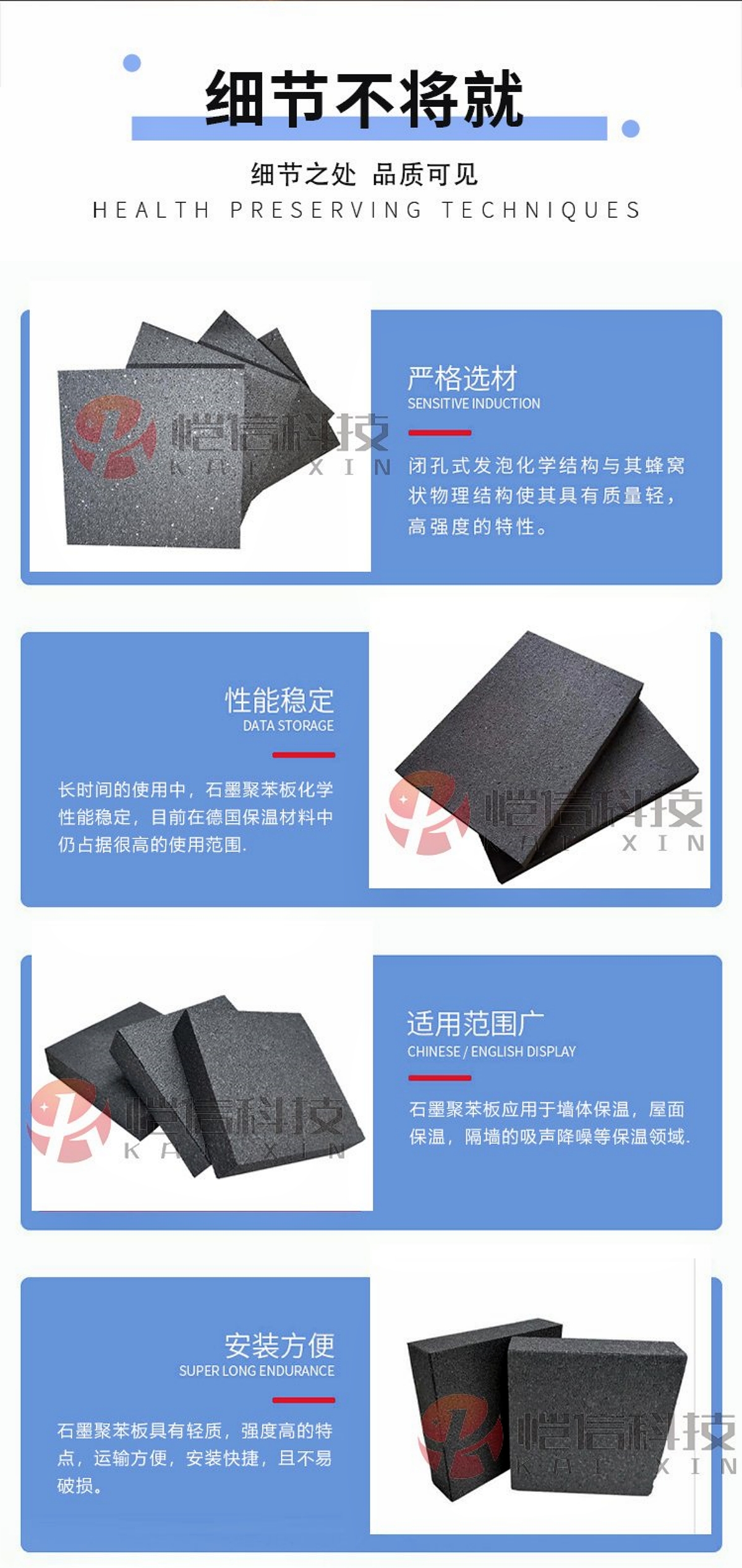 高强度与高刚度:石墨聚苯板具有高强度和高刚度,可以在保证质量的前提下减少结构体积和重量,具有良好的经济效益。